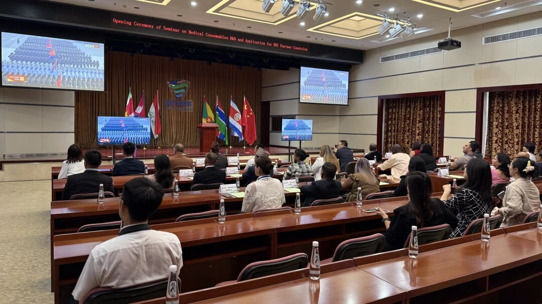 在北京,国药国际邀请“一带一路”国家中国医用耗材研发与应用研修班学员收看大会盛况