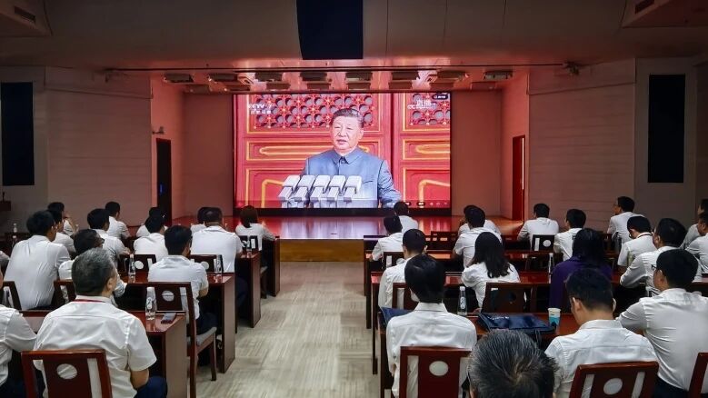 国药集团干部职工集中收看大会直播盛况,认真聆听习近平总书记重要讲话,共同见证振奋人心的历史时刻。