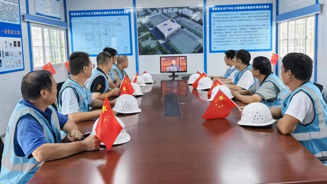 在河南焦作,国药工程焦作容生项目团队收看大会盛况