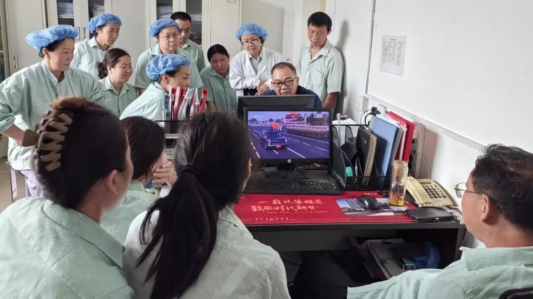 在山西大同,国药威奇达研究中心职工收看大会盛况